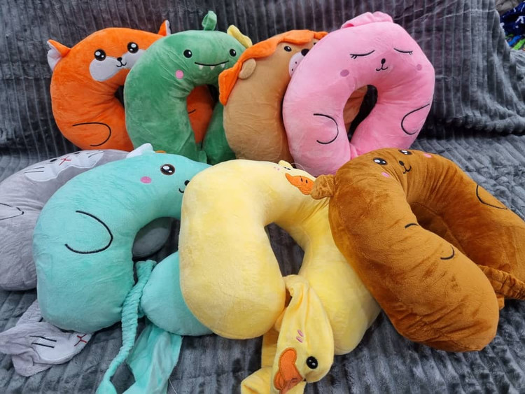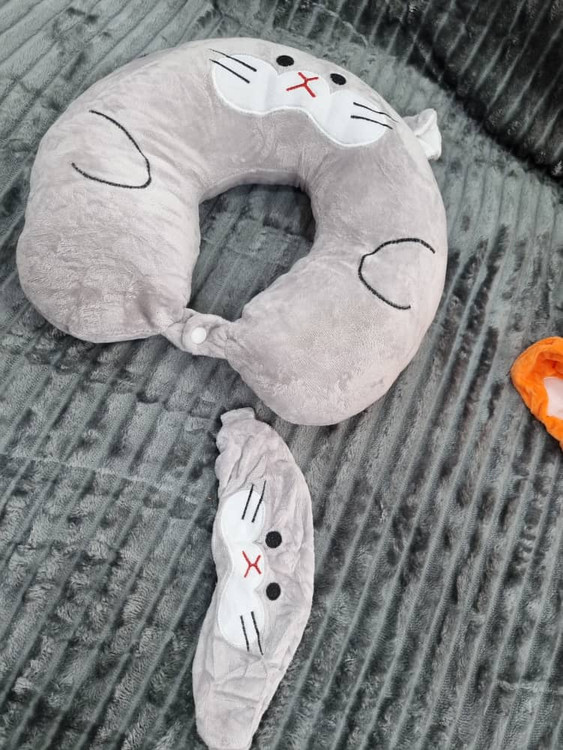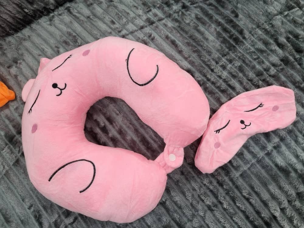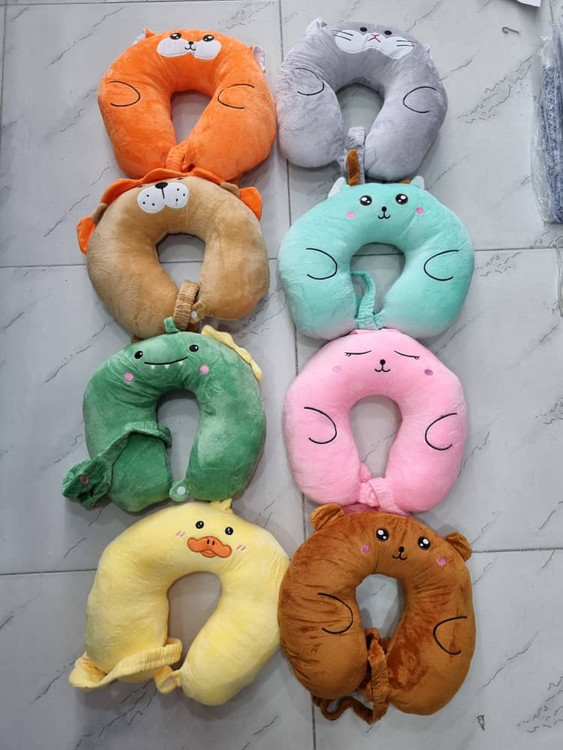 بالشت پشت گردنی دخترانه و پسرانه دارای 6 رنگ مختلف که طرح های مختلفی مثل خرگوش، گربه، خرس و..... به همراه شکل های عروسکی به زیبایی روی آنها گلدوزی شده است. این بالشت به صورت نیم دایره ای طراحی شده که توسط یک دکمه فشاری قابلیت اتصال و جداشدن دوسر آن را از هم دارد و دارای یک بند جهت آویز نمودن آن، از نقاط مختلف می باشد. در کنار این بالشت یک چشم بند زیبا قرار گرفته است که دلبند شما زمان خواب می تواند از آن استفاده کند، تا نور محیط اطراف موقع خواب او را آزار ندهد.