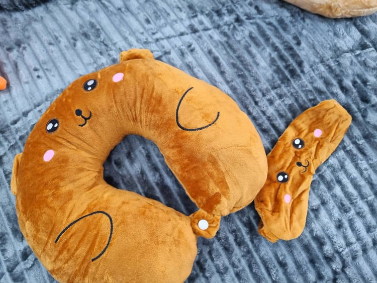 ✅این بالشت قابل استفاده در خارج از منزل،مسافرت ها، هنگام خواب در ماشین و .....می باشد تا به گردن دلبندشما آسیبی نرسد و خواب خوبی راتجربه نماید. بالشت پشت گردنی عروسکی گلدوزی شده کودک به همراه چشم بند