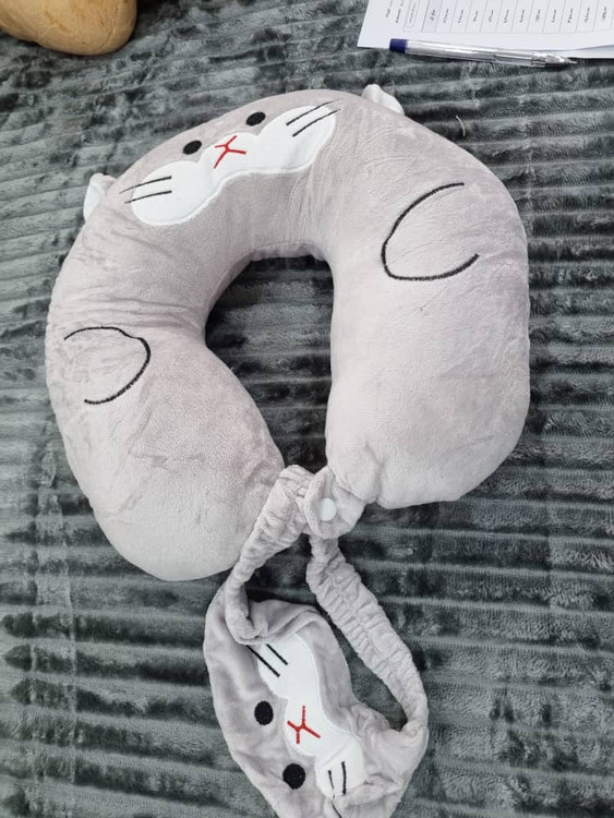 بالشت پشت گردنی عروسکی گلدوزی شده کودک به همراه چشم بند