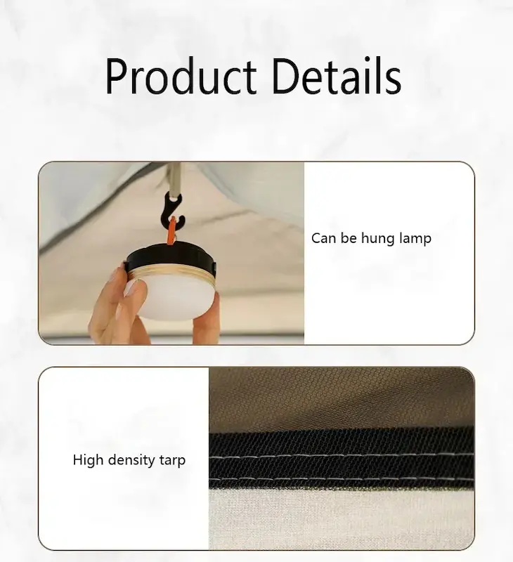 طنابهای ضدباد (Windproof Rope) که در نقاط حساس نصب شدهاند، باعث میشوند چادر در بادهای شدید و شرایط زمینی ناپایدار نیز ایستادگی خود را حفظ کند.