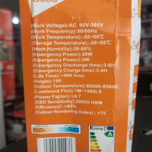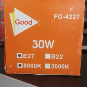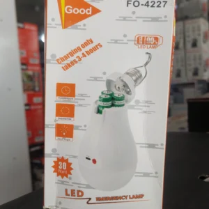 لامپ اضطراری شارژی ۳۰ وات مدل FO-4227 با شدت روشنایی 1400 لومن، مدت استفاده ۳ تا ۶ ساعت و طراحی قابل حمل، نوری مطمئن برای خانه، سفر و کمپینگ است.