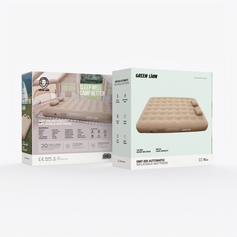 تشک بادی GTM‑200 گرینلاین ترکیبی از راحتی و سهولت استفاده را به شما ارائه میدهد. با پمپ داخلی ۴۰ وات و باتری ۲۶۰۰ mAh، این تشک با فشار یک دکمه در حدود ۱۴۰ ثانیه باد میشود و تا ۴–۵ بار بادگیری کامل را بدون شارژ مجدد فراهم میکند . ساختهشده از PVC مخملی لطیف و مقاوم، با طراحی ۴۸حفرهای برای توزیع یکنواخت وزن، تا ۳۰۰ کیلوگرم وزن را تحمل میکند . مناسب برای استفاده در داخل یا خارج منزل، این تشک در ابعاد ۲۰۰ × ۱۵۰ × ۲۵ سانتیمتر باز میشود و در حالت جمعشده به ۳۶ × ۳۴ × ۱۴ سانتیمتر کاهش مییابد . وزن آن حدود ۴.۵ کیلوگرم است و در بستهبندی کیفدار ارائه میشود که دو بالش متورم، کابل شارژ تایپ‑سی، وصله تعمیر و آداپتور نیز همراه است .
