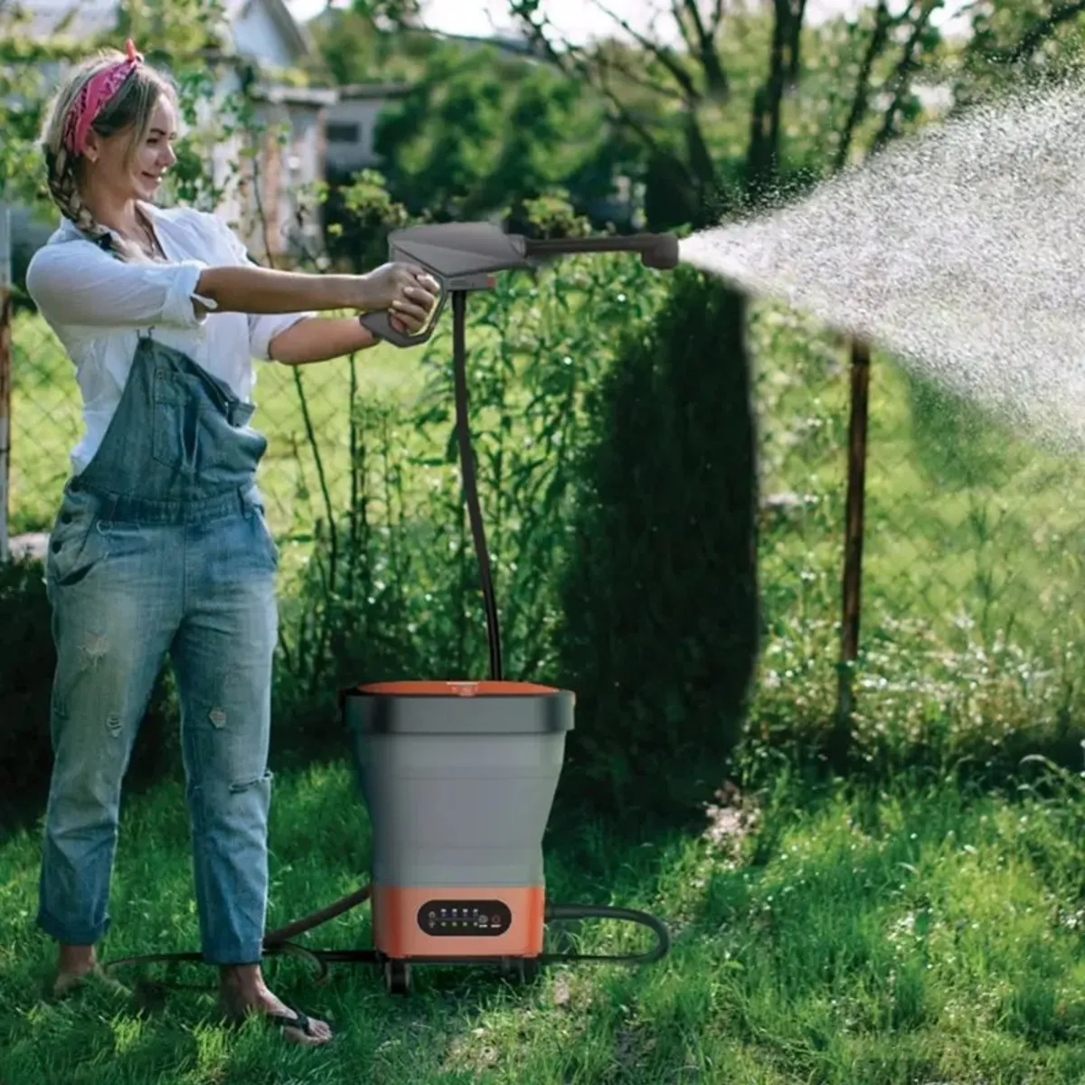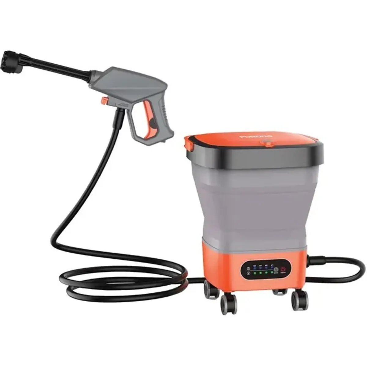 کارواش چند منظوره با طراحی تاشو و قابل حمل مخزن آب با ظرفیت بزرگ 15 لیتری فشار قابل تنظیم از 1.5 تا 2.3 مگاپاسکال (حداکثر 32 بار) باتری 3000 میلیآمپر ساعتی و موتور قدرتمند 260 وات همراه با پخشکننده فوم و لوله آب 3 متری چرخهای حمل برای جابجایی آسان ایدهآل برای شستشوی خودرو، مراقبت از باغ و تمیز کردن سطوح