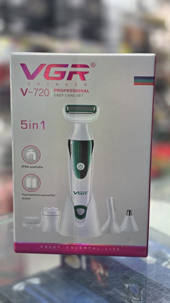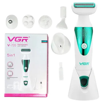 ست اصلاح موی بدن بانوان وی جی آر مدل 720 ست اصلاح و پاکسازی صورت و بدن زنانه بوده و دارای وزن 100 گرم است. ست زنانه VGR V-720 ابزاری کامل برای اصلاح و پیرایش بانوان است که دارای 5 سری مختلف است که شامل: سری اصلاح ابرو، موزن بینی، ماساژور، برس پاکسازی و شیور می شود. از مهم ترین ویژگی های ست اصلاح وی جی آر V-720 قابلیت ضد آب بودن دستگاه است.