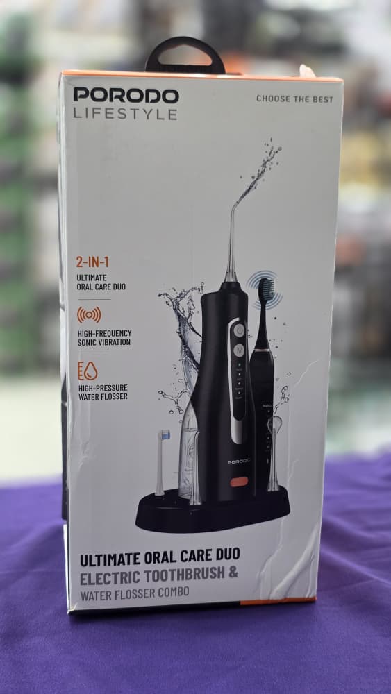 دیگر بین مسواک زدن و نخ دندان کشیدن یکی را انتخاب نکنید. ست Porodo Ultimate Oral Care Duo PDLSTC2254 ترکیب نهایی یک مسواک برقی پیشرفته و یک واترجت (Water Flosser) حرفهای است که مراقبت ۳۶۰ درجه از دندانها و لثههای شما را تضمین میکند. این محصول صرفهجویی در فضا و هزینه است، بدون آنکه از کیفیت کاسته شود.