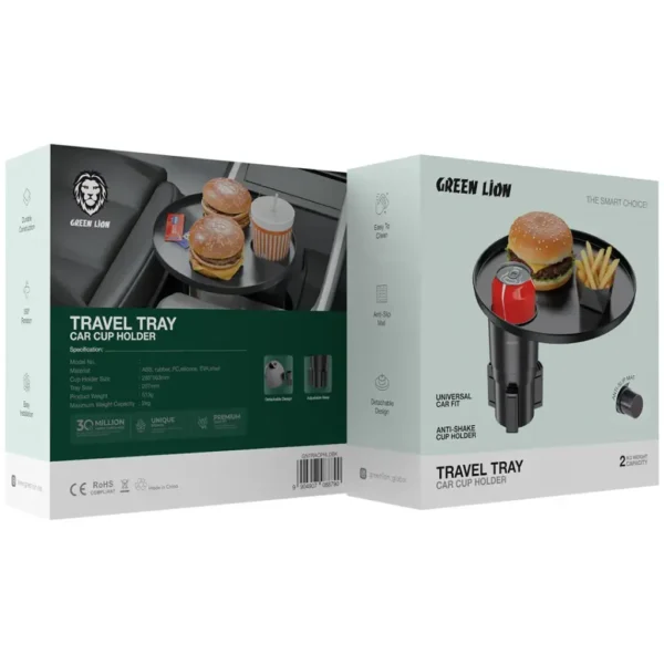 سینی و جا لیوان خودرو Green Lion Travel Tray – مشکی | نظم، راحتی و کاربری چندمنظوره