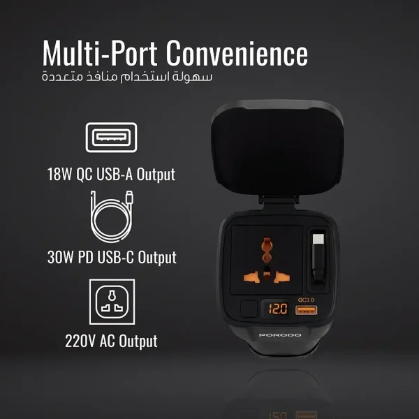 Porodo DriveStation 200W انتخابی کاربردی برای تأمین برق و شارژ سریع دستگاهها در سفرهای کوتاه و طولانی است. I'll