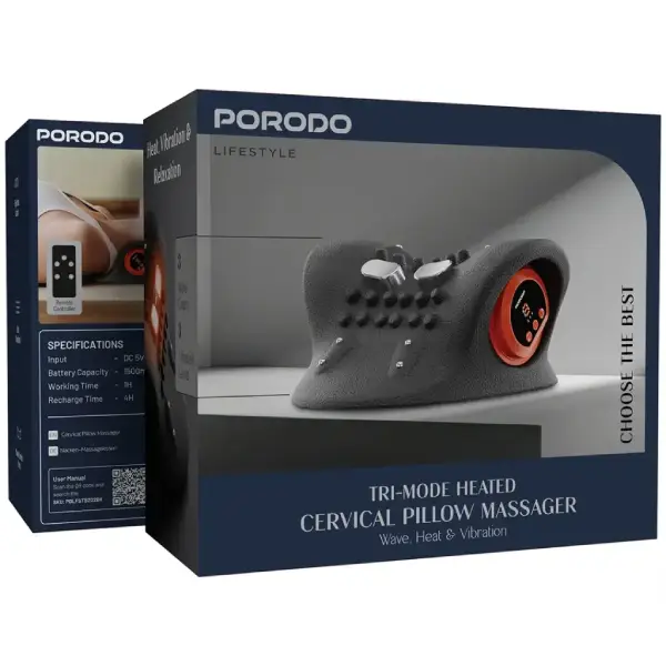 ماساژور بالش گردن Porodo Lifestyle Tri-Mode Heated Cervical Pillow Massager با ترکیب سه حالت موج، گرما و لرزش، طراحی ارگونومیک و عملکرد قدرتمند، یک انتخاب حرفهای برای افرادی است که به دنبال کاهش درد، رفع خستگی و افزایش آرامش عضلات گردن هستند. این محصول با کیفیت ساخت بالا، قابلیت تنظیم شدت و فناوری گرمایشی پیشرفته، گزینهای ایدهآل برای استفاده روزمره، محیط کار و سفر محسوب میشود و تجربهای آرامشبخش و مؤثر را برای کاربر فراهم میکند.